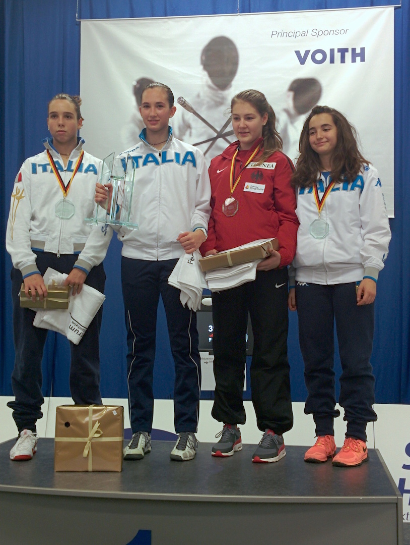 AI CAMPIONATI EUROPEI CADETTI E GIOVANI 2015 LA SQUADRA DI SPADA FEMMINILE CADETTE CONQUISTA L’OLIMPO EUROPEO SALENDO SUL PIU’ ALTO GRADINO DEL PODIO!